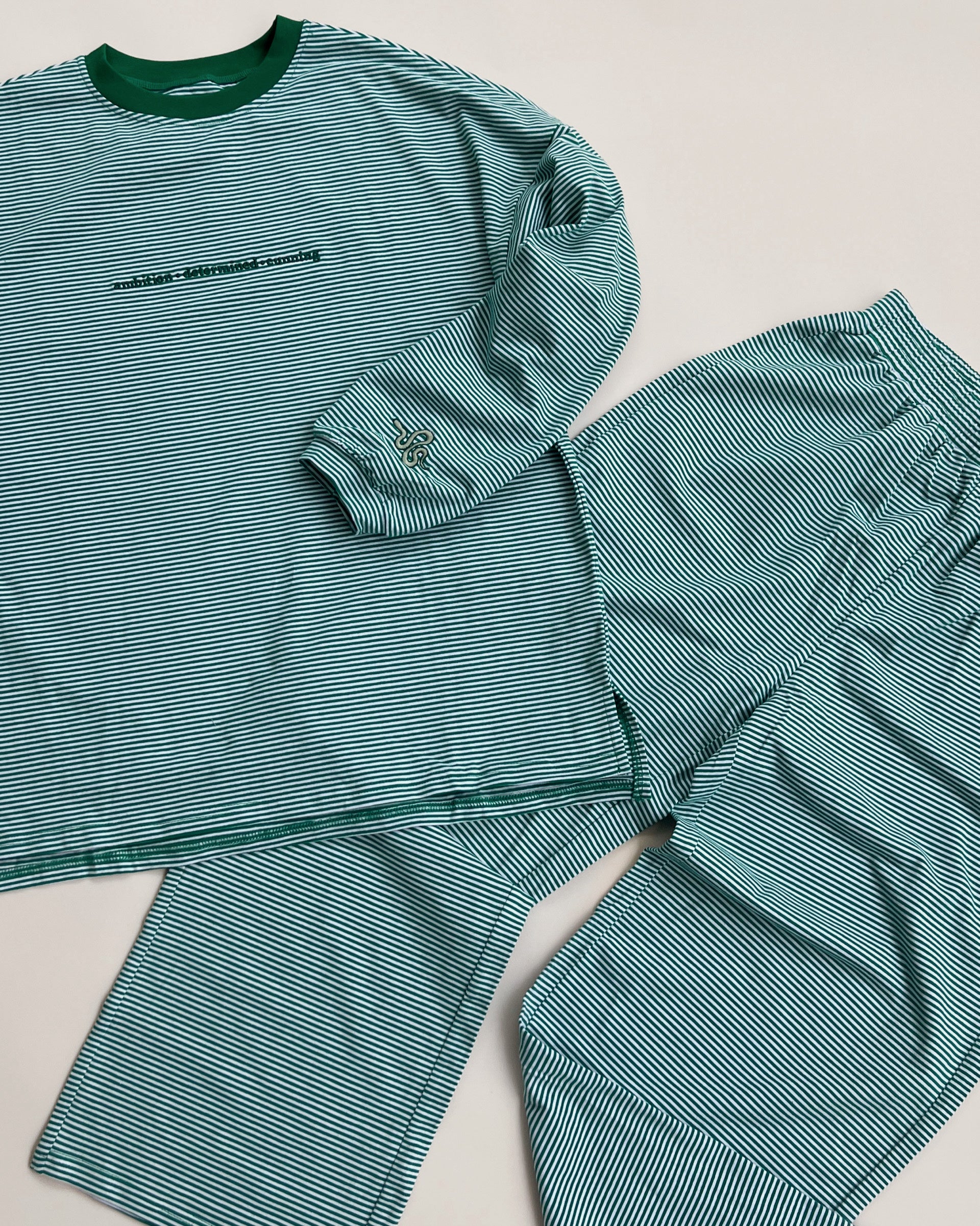 Designed with a soft, breathable feel and a laid-back silhouette, this set gives you that perfectly undone, lived-in look while still feeling put together. The subtle embroidery on the front & sleeve adds just enough detail to make it feel special, whether you’re lounging at home or stepping out for a coffee run.